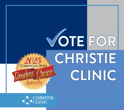 Vote for Christie Clinic! 11/4/2025 Christie Clinic is proud to be nominated in the Commercial-News Readers' Choice Awards. Please visit the website and vote for your favorites in Vermilion County!Voting ends November 15.Nominations include:Dermatology Practice - Christie Clinic Department of DermatologyDoctor - Dr. Haydee StewartHealth Clinic - Christie ClinicOptometrist - Dr. Stephanie Loy Back to News