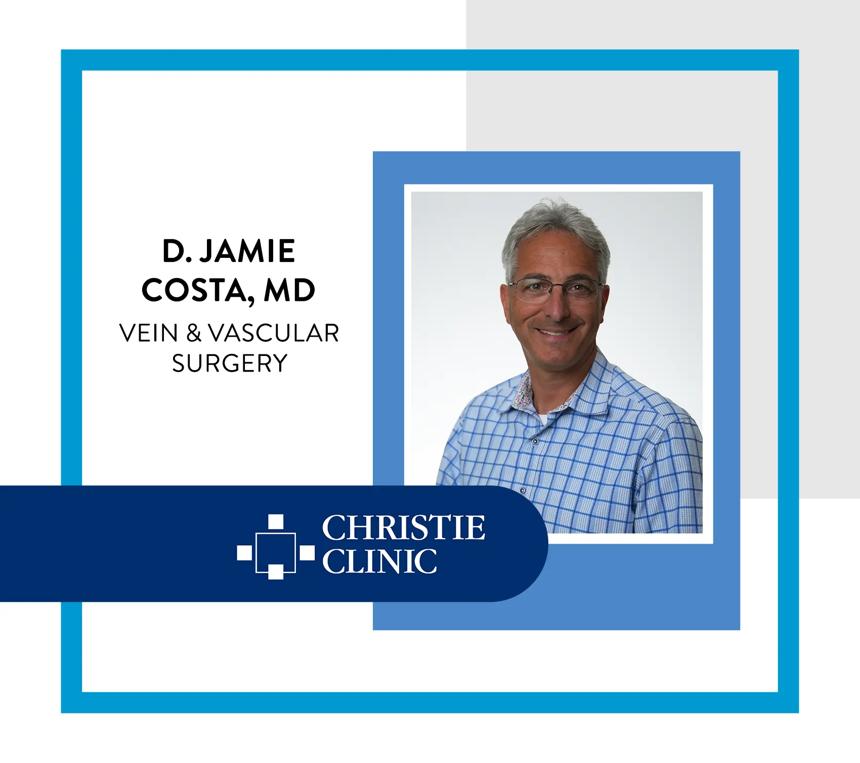 Christie Clinic is pleased to announce that D. Jamie Costa, MD, a vascular surgeon, has joined the Christie Clinic Department of Vein & Vascular Surgery.