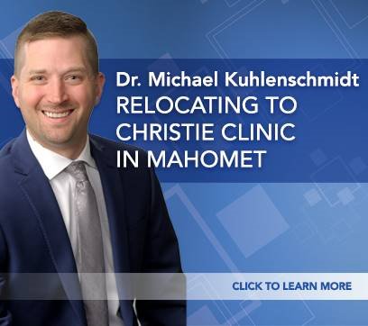 Dr. Michael Kuhlenschmidt Relocates Practice to Christie Clinic in Mahomet Christie Clinic is pleased to announce Dr. Michael Kuhlenschmidt will relocate his practice from 1801 West Windsor Road in Champaign to 1001 Commercial Drive in Mahomet. Dr. Kuhlenschmidt will ... Read more about Dr. Michael Kuhlenschmidt Relocates Practice to Christie Clinic in Mahomet