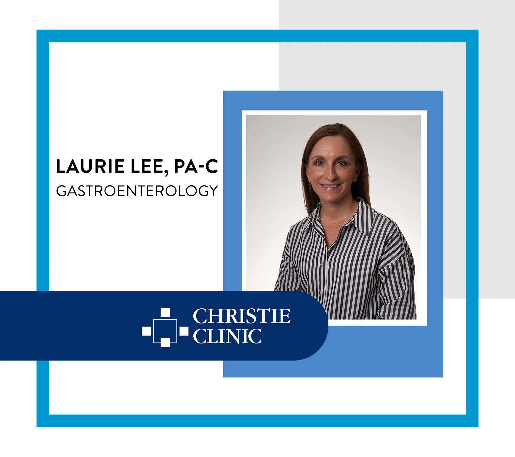 Christie Clinic Welcomes Laurie Lee, PA-C to the Department of Gastroenterology Christie Clinic Department of Gastroenterology extends a warm welcome to Laurie Lee, PA-C as she joins the team of providers at 3101 Fields South Dr in Champaign, IL. Read more about Christie Clinic Welcomes Laurie Lee, PA-C to the Department of Gastroenterology