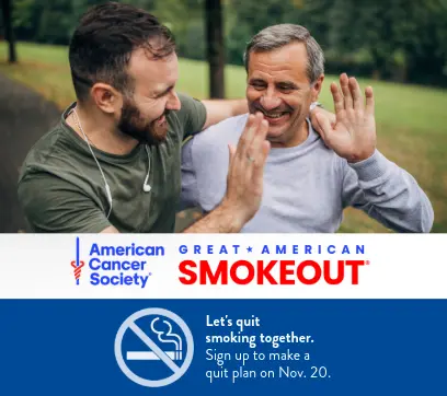 The Great American Smokeout November 20, 2025, is the Great American Smokeout - the perfect time to take the first step toward quitting for good. Read more about The Great American Smokeout